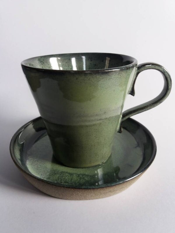 This breakfast set consists of a cup, saucer and a small plate. Each piece is handmade so you have to allow small variations. The glazes I use are non-toxic and food safe. Washing by hand is recommended but they are dishwasher friendly. I have sanded the bottom of every pot until smooth to protect your furniture from scratches.