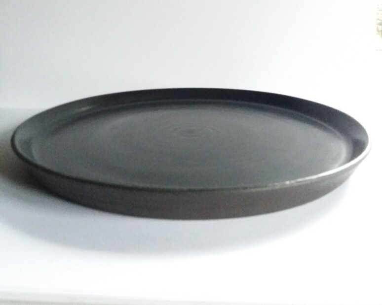 Bord in zwarte klei vanbinnen geglazuurd met satijnmat zwart glazuur