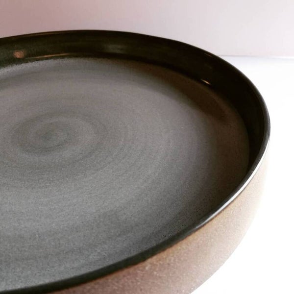 Bord en bowl in een mooie bruingrijze klei met een zacht grijs glazuur in meerdere tinten